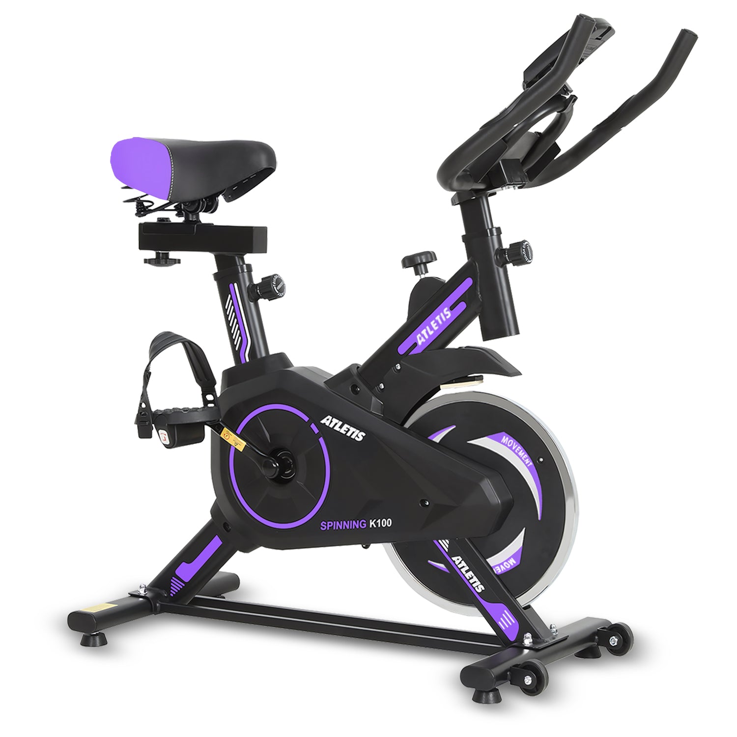 Mejora tu condición física desde casa con la Bicicleta Spinning K100 de Atletis. Este equipo, diseñado para brindar un entrenamiento completo y eficiente, cuenta con un volante de inercia de 4 kg que ofrece un pedaleo fluido y consistente, ideal para rutinas intensivas. Su sistema de resistencia por cinturón y pastillas de freno de fieltro asegura un control preciso y un frenado seguro, complementado por un freno de seguridad.