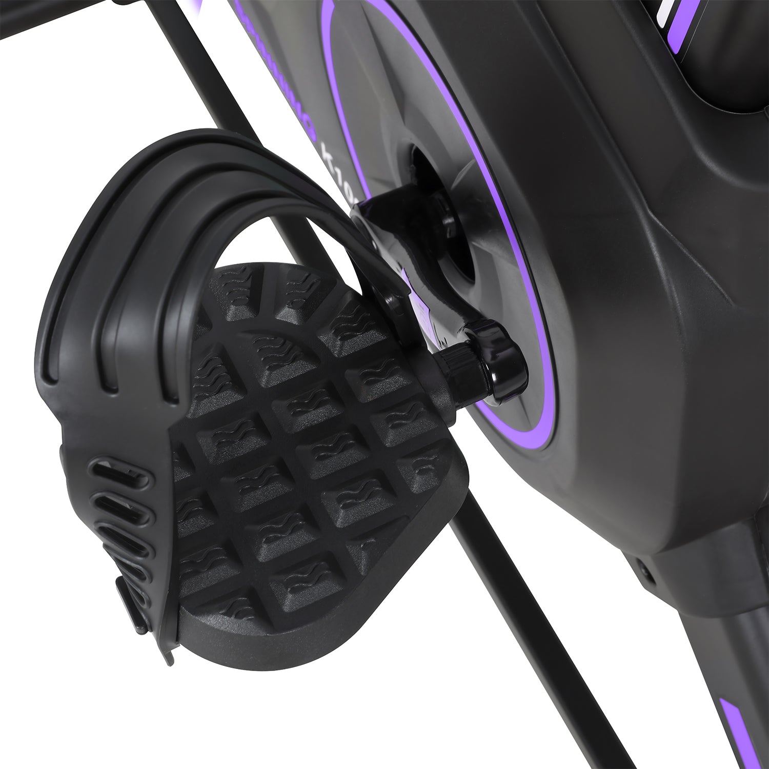 La estructura de acero robusto y el manillar recubierto de NBR y PVC proporcionan estabilidad y durabilidad, mientras que el asiento acolchado y ajustable, fabricado con espuma EPE y PVC, ofrece comodidad durante el entrenamiento. Este modelo también incluye un sensor de pulso para monitorizar tu frecuencia cardíaca y un monitor multifunción que registra velocidad, distancia, tiempo, calorías, odómetro y pulso, permitiéndote un seguimiento detallado de tu progreso.