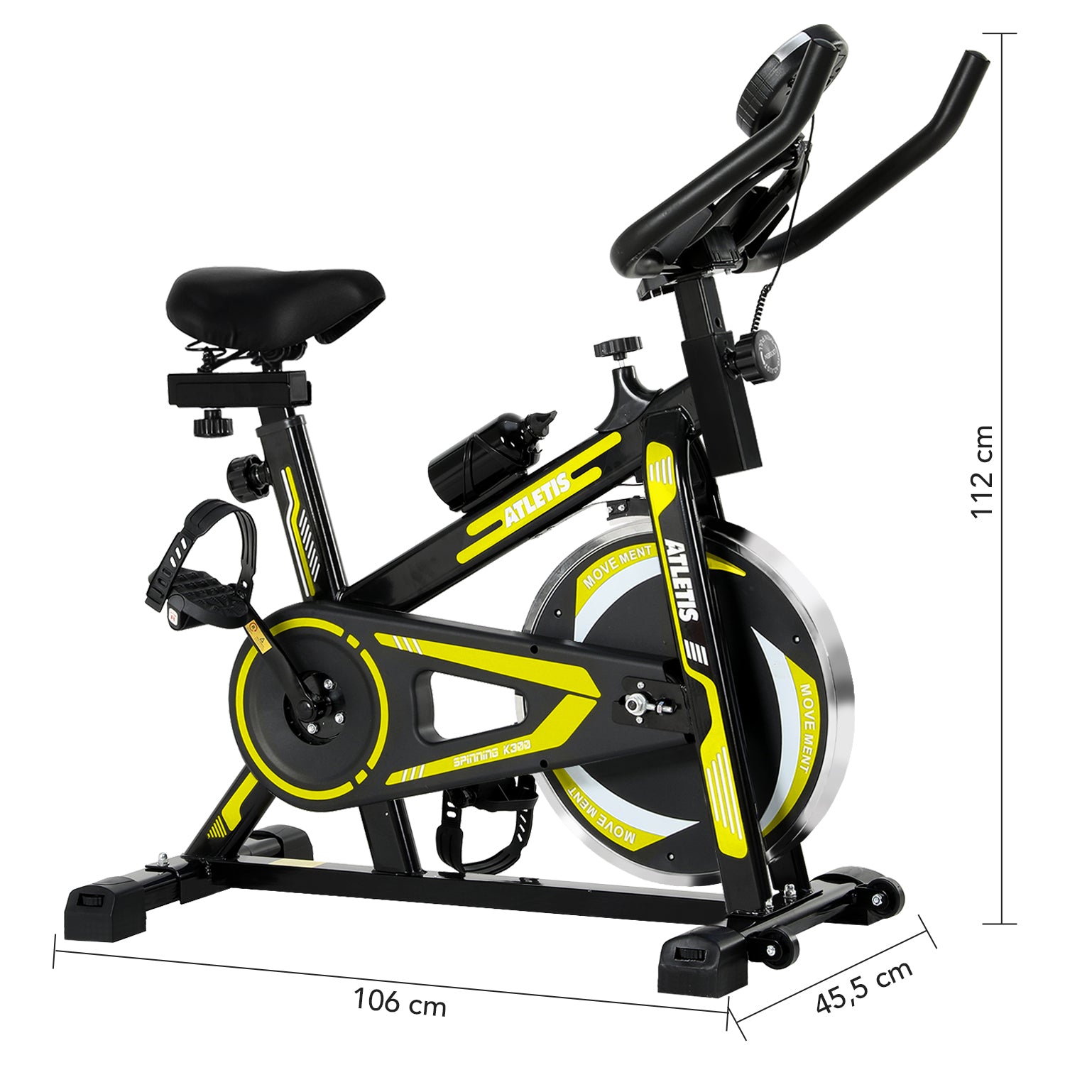 Bicicleta Spinning K300 es la aliada perfecta para entrenamientos de alta intensidad desde la comodidad de tu hogar. Equipada con un volante de inercia de 6 kg fabricado en hierro, garantiza un pedaleo fluido y estable. Su sistema de transmisión por correa (belt-drive) ofrece un funcionamiento silencioso y de bajo mantenimiento, perfecto para entrenamientos sin interrupciones. Diseñada con una estructura de acero y plástico resistente, esta bicicleta soporta hasta 120 kg de peso. Su manillar ergonómico, fabricado en acero con recubrimiento HDR, y su asiento ajustable en 7 niveles permiten personalizar la experiencia según la altura del usuario (150 - 190 cm). El monitor LCD integrado proporciona datos en tiempo real sobre velocidad, distancia, tiempo, odómetro y calorías quemadas, ayudando a optimizar cada sesión de ejercicio. Además, cuenta con pedales de plástico con ajuste para mayor seguridad y un freno de seguridad para detener la bicicleta de inmediato si es necesario.