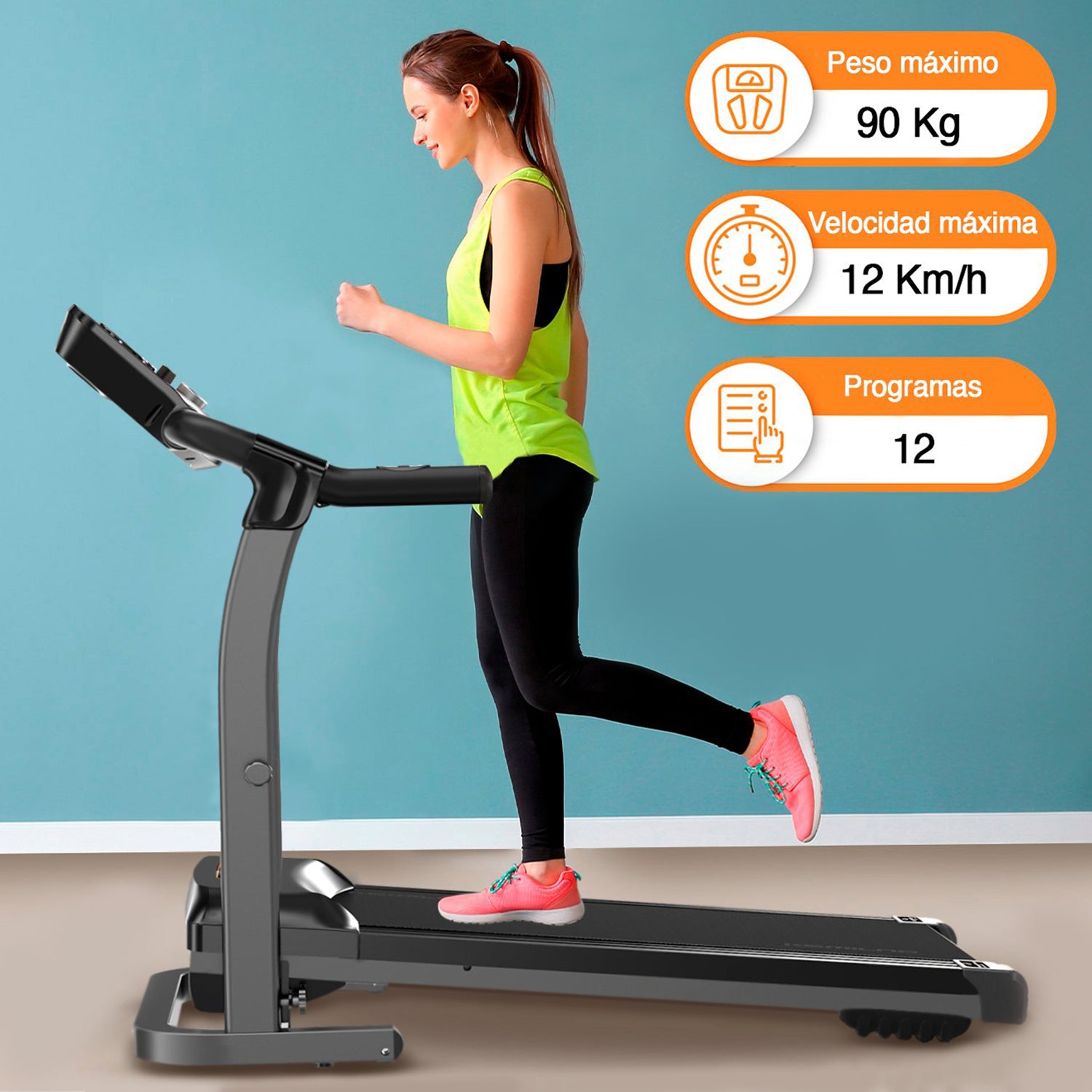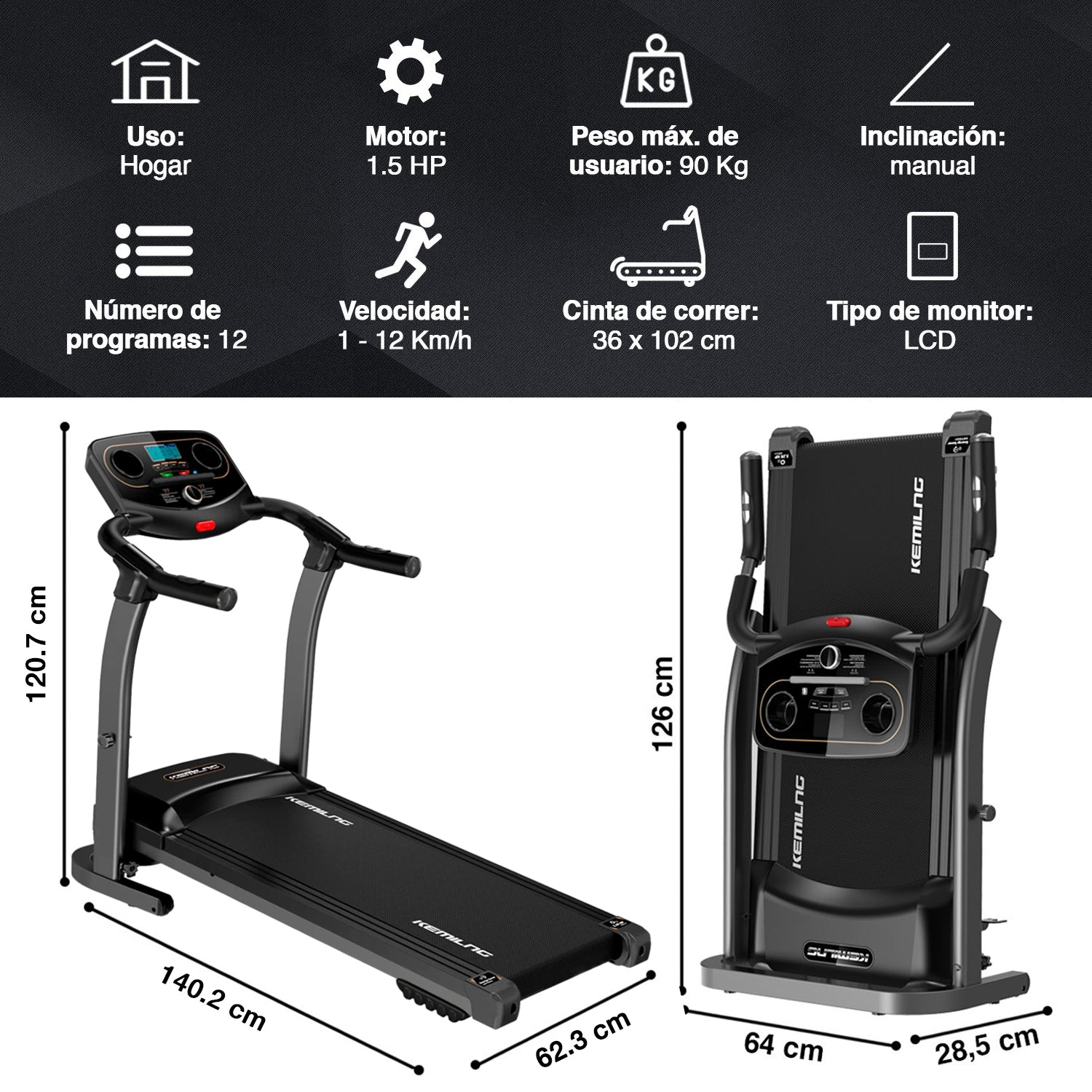 ¡Activa tu cuerpo y alcanza tus metas en casa! La Trotadora Plegable Kemilng M201 con parlantes y bluetooth es la aliada perfecta para mejorar tu condición física sin salir de casa. Diseñada para quienes buscan un entrenamiento completo y variado, esta trotadora ofrece 12 programas predefinidos y 3 niveles de inclinación manual, permitiéndote simular diferentes tipos de terreno. Su motor de 1.5 HP DC alcanza velocidades de 1.0 a 12.0 km/h, con botones de acceso rápido para ajustarla en cualquier momento.